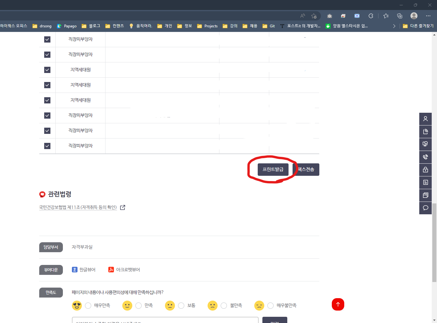 출력원하는 가입자 체크 후 프린트발급 하시면 끝 !