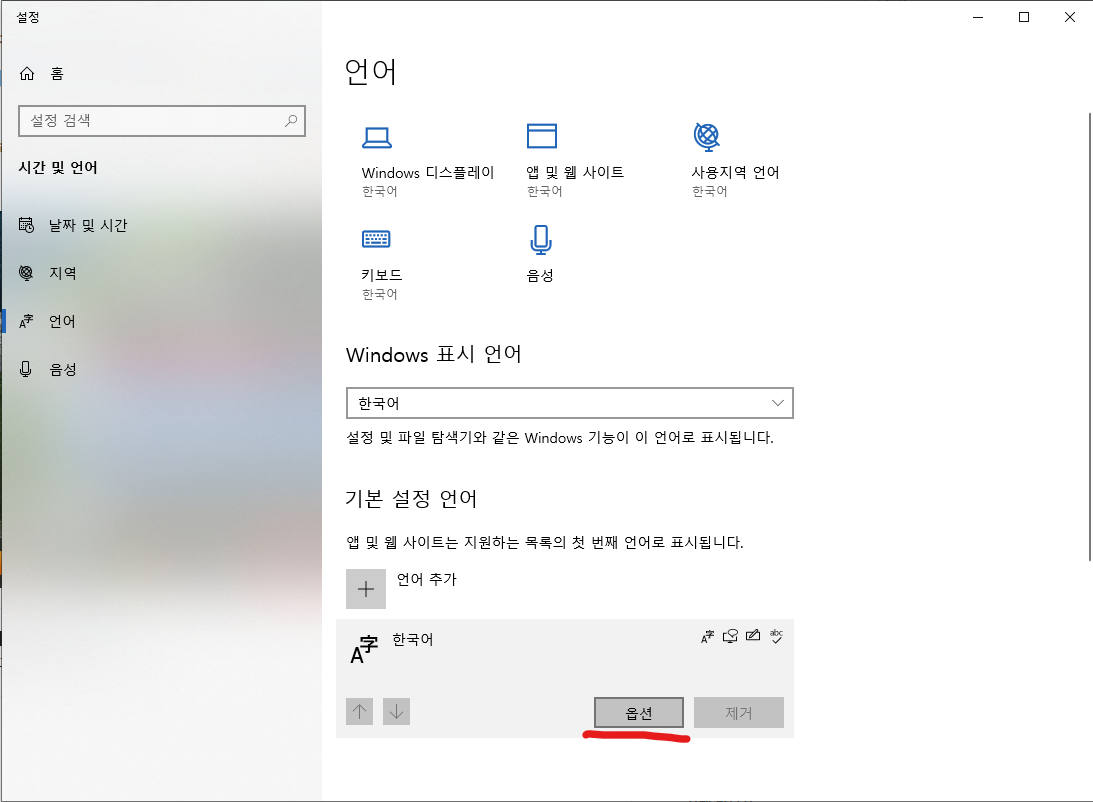 기본 설정 언어 아래에 있는 한국어 옵션 클릭 !