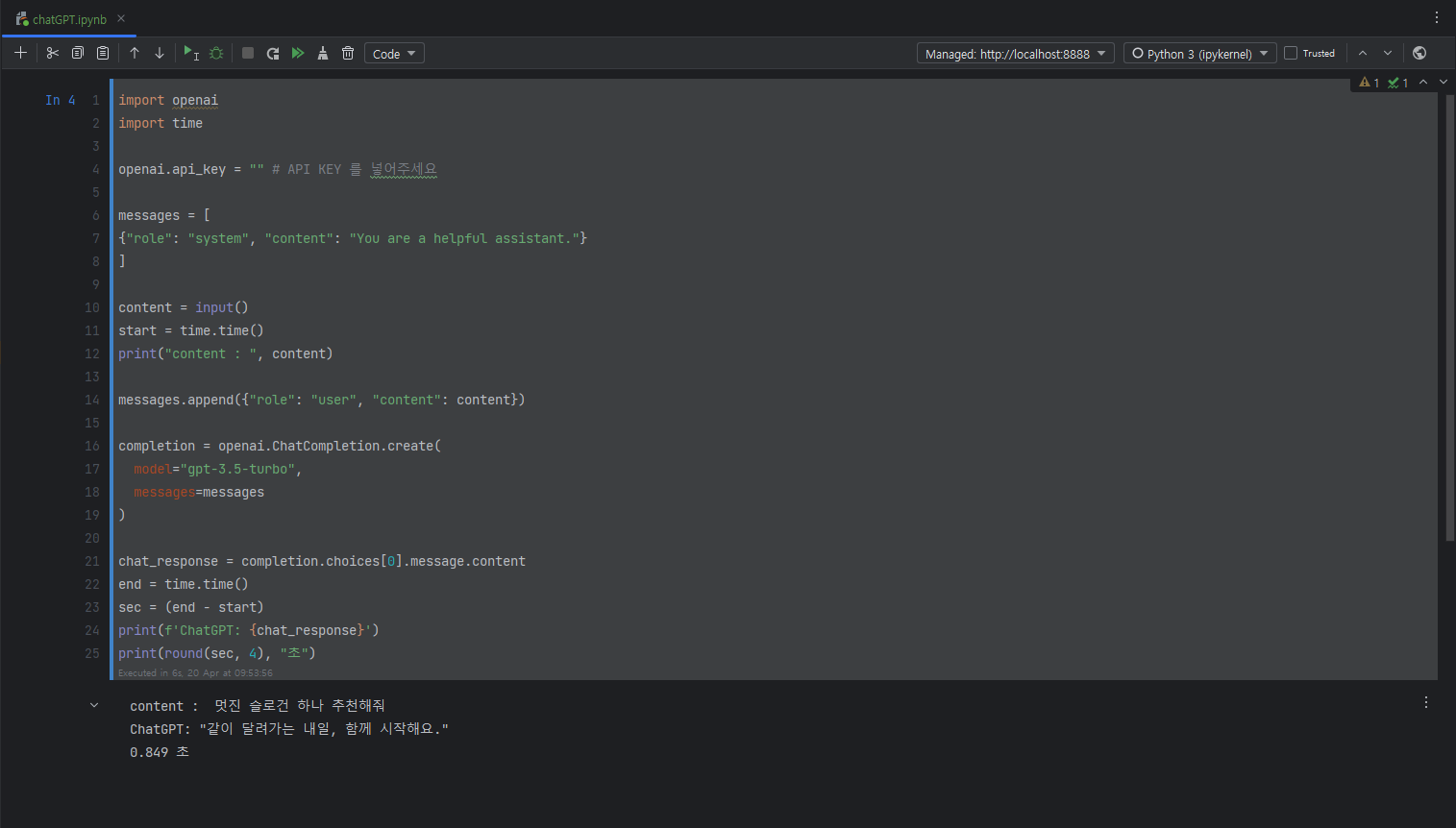 openai.api_key = "" # API KEY 를 넣어주세요
