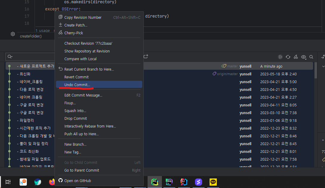 [PyCharm] 파이참에서 commit 취소하는 방법 (undo commit)