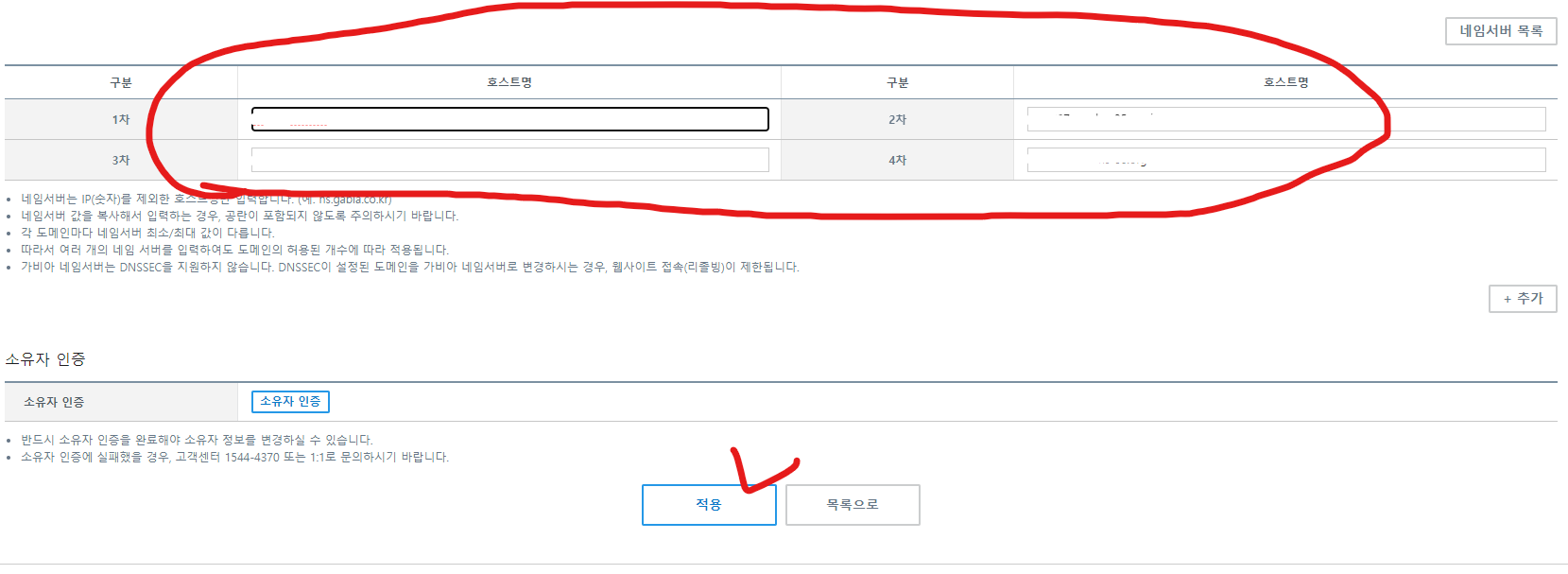 도메인 이름에 가비아에서 구매하신 도메인을 입력해주세요 !