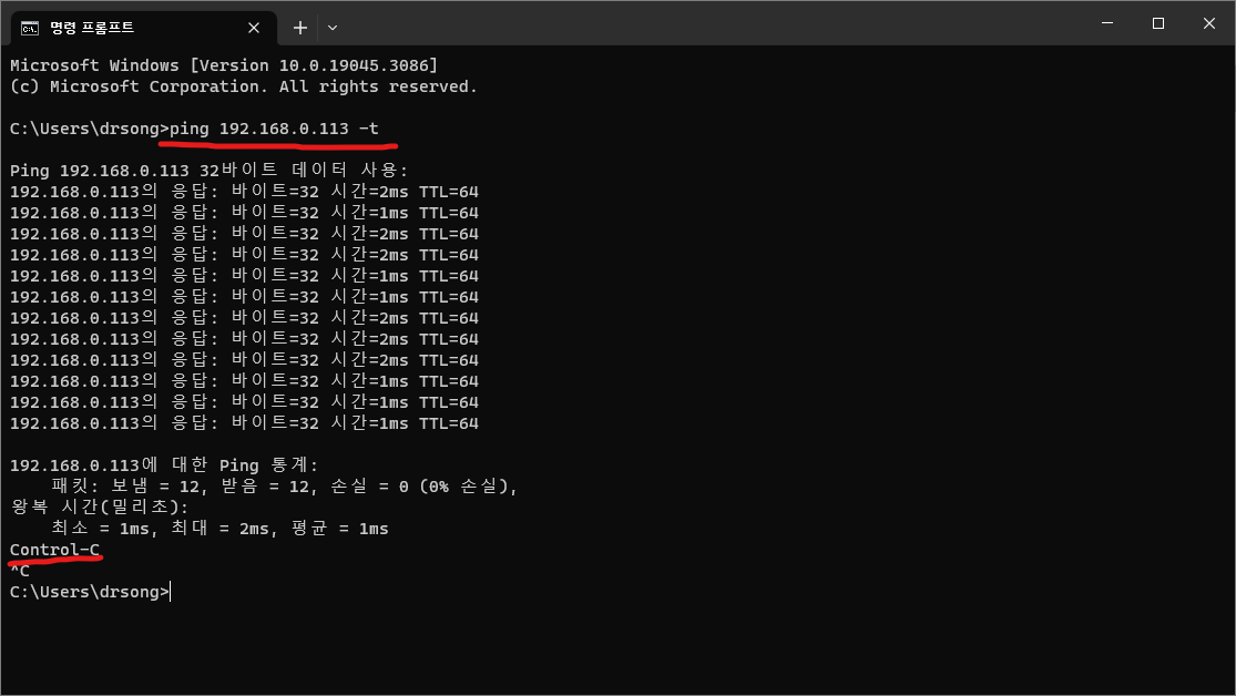 아래와 같이 -t 옵션을 주어 계속해서 ping을 보낼 수 있습니다 !!