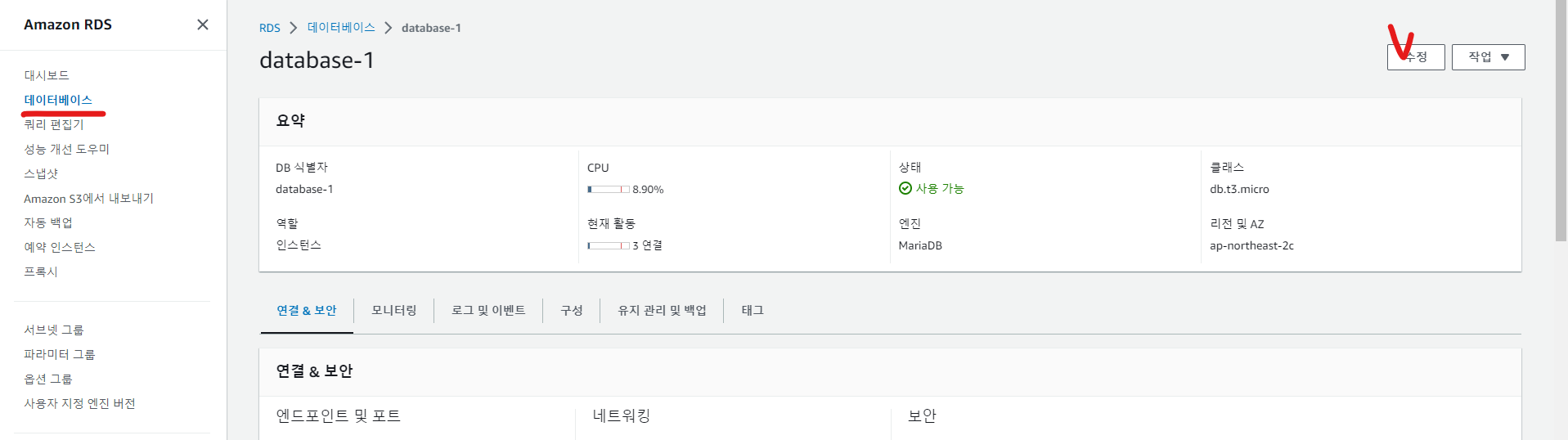AWS RDS 에서 DB를 사용인데 외부에서 접속이 안될 때 체크 해봐야하는 곳이 있습니다.
