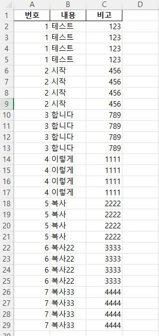 [Python] pandas 사용하여 엑셀 각각의 열을 연속적으로 복사하는 방법 !!