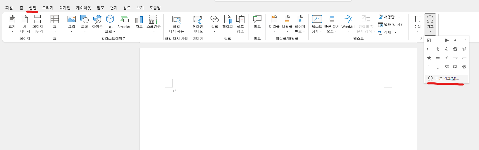 삽입 -> 기호 -> 다른 기호(W)