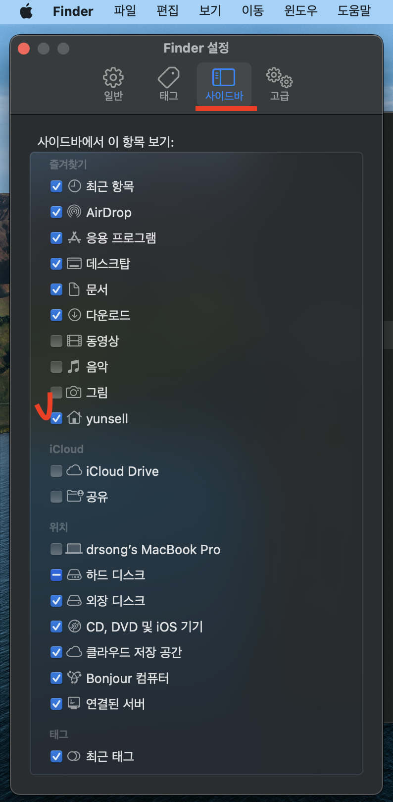 [MAC OS] 맥os 파인더(Finder)에 home경로 즐겨찾기 하는 방법 !!
