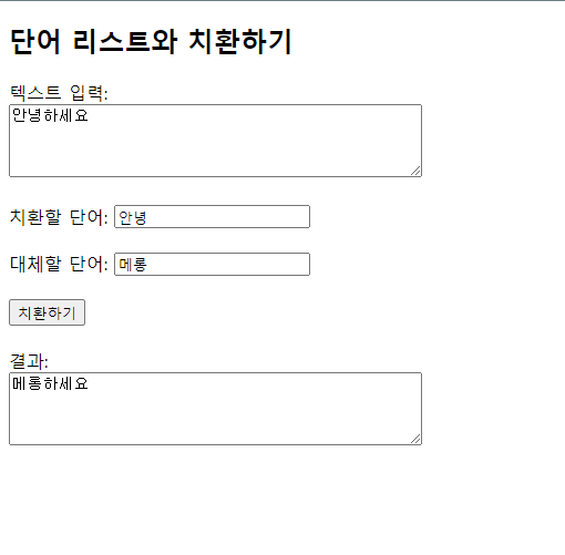 <button onclick="replaceWord()">치환하기</button><br><br>