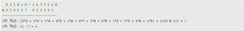 계산2 = 11 - (계산1 % 11)