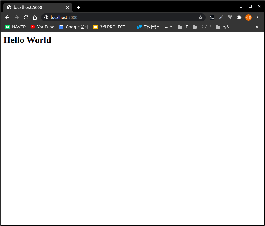 이렇게 뜨셨다면 여러분은 flask 로 웹서버를 구동 성공하신겁니다 !! ㅎㅎ