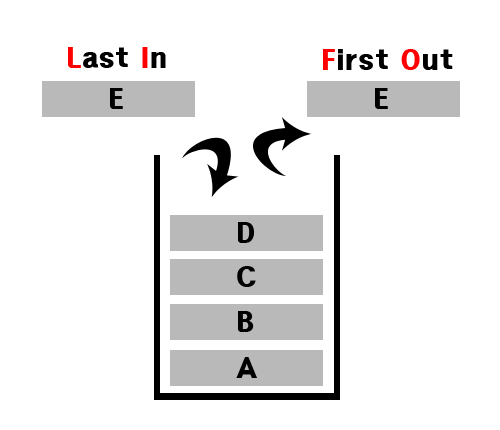 - 한 쪽 끝에서만 데이터를 넣거나 뺄 수 있는 선형구조, 제일 마지막에 들어온 데이터가 제일 빨리 나가는 방식