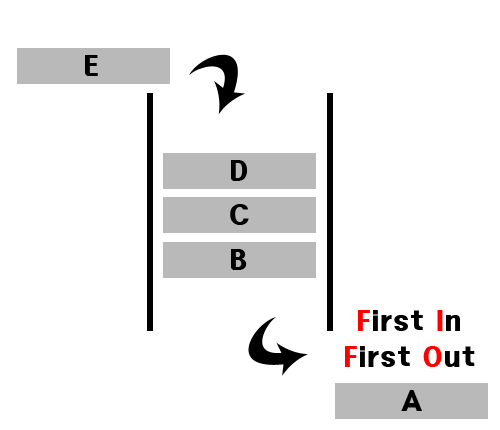 - 양 쪽 끝에서만 데이터를 넣거나 뺄 수 있는 선형구조, 제일 처음에 들어온 데이터가 제일 빨리 나가는 방식