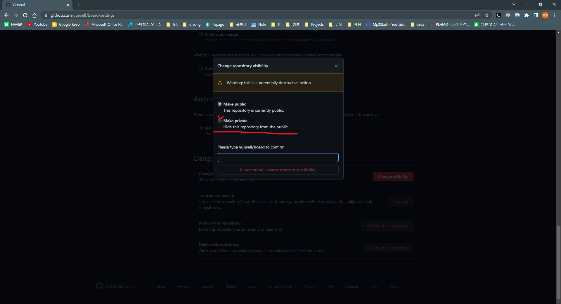 Github 퍼블릭(public) 저장소를 프라이빗(private) 저장소로 변경하는 방법 !!