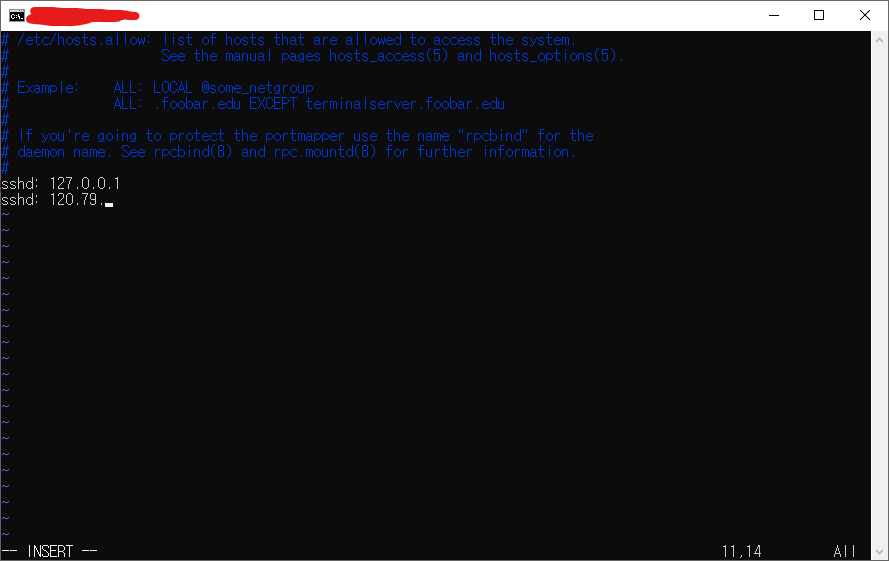 $ vi /etc/hosts.allow