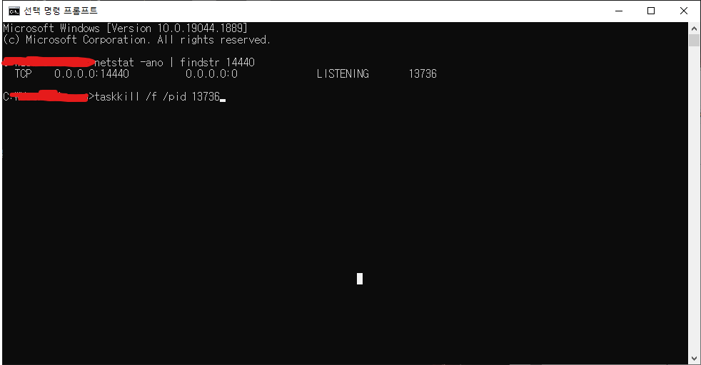 이제 사용중인 port를 종료하는 방법은 위 명령어로 포트번호를 찾으시면 맨 마지막의 pid 번호를 알 수 있습니다.