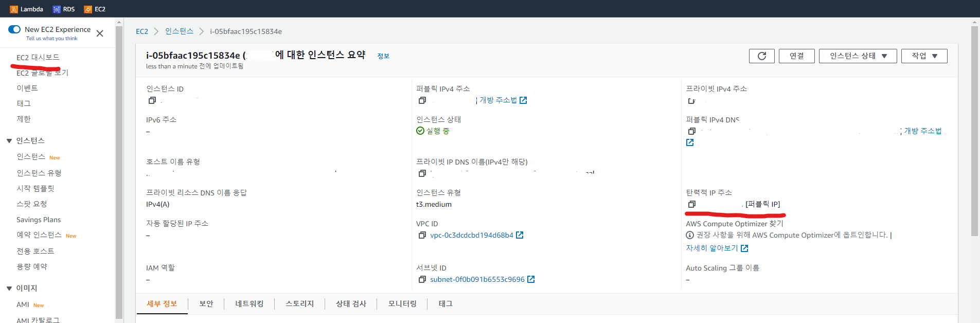 4. EC2 대시보드 -> 탄력적 IP 확인 -> 끝!