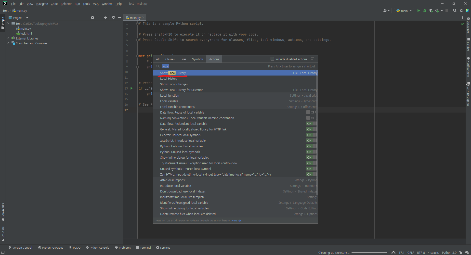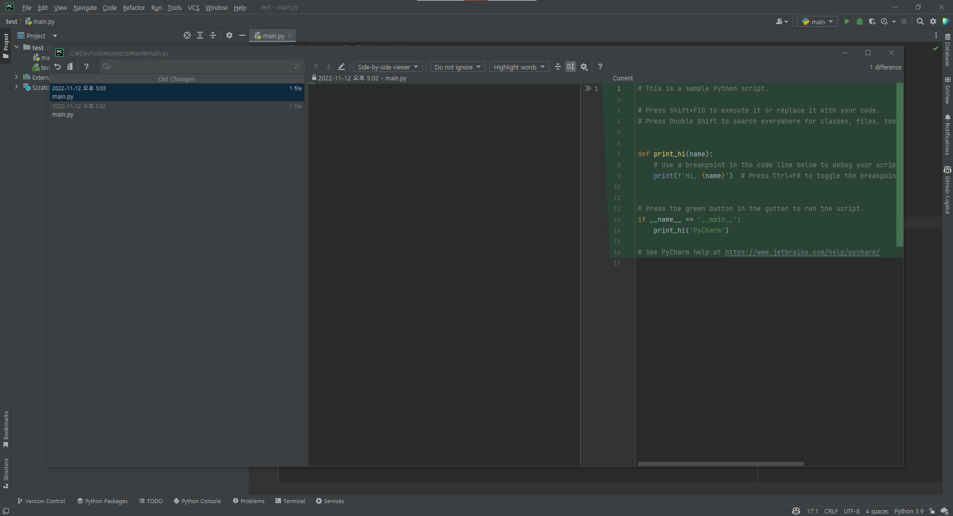 [PyCharm & IntelliJ] 로컬 기록(local history)으로 코드 찾기 및 복구하는 방법 !